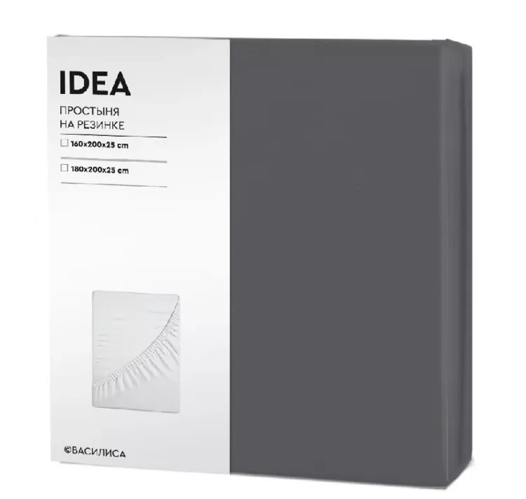"IDEA" Простыня на резинке 180х200х25см, цв.графит, перкаль
