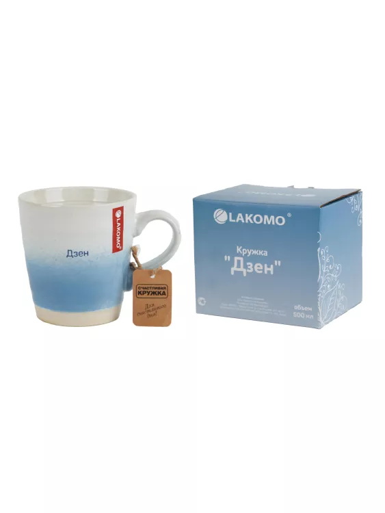 "Идиллия" Кружка "Дзен" 500мл, цв.белый с синим, в п.у.