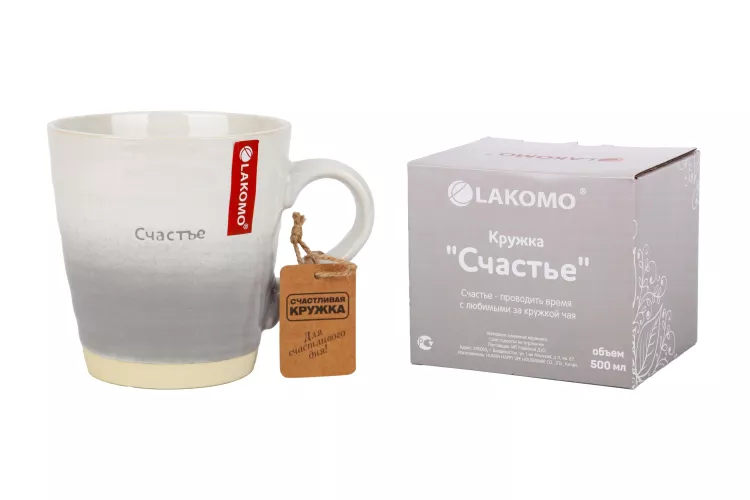 "Идиллия" Кружка "Счастье" 500мл, цв.белый с серым