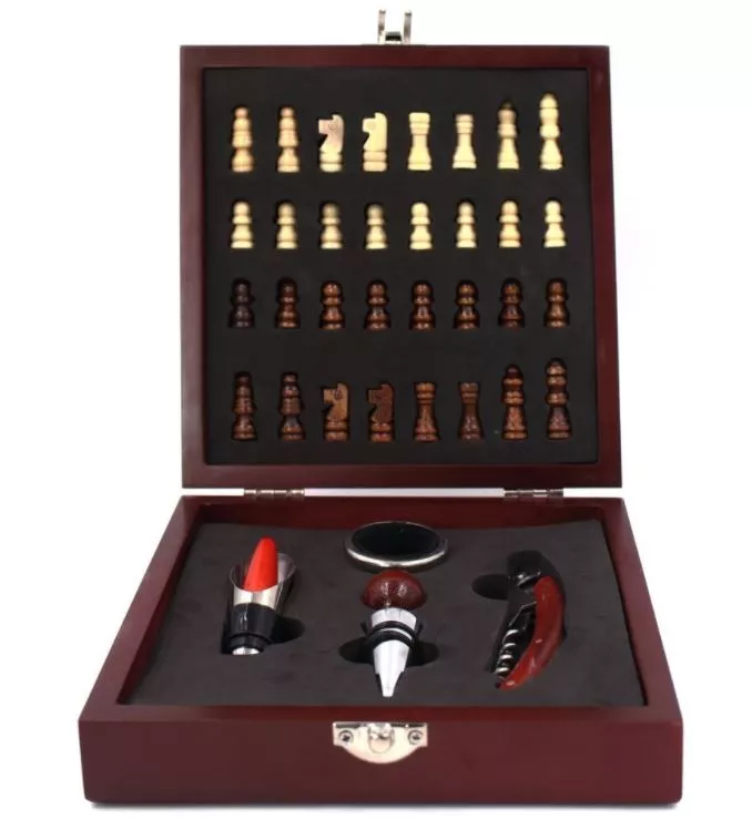 Игра настольная 2 в 1: шахматы, набор сомелье, 4 предмета (штопор, пробка, кольцо, дозатор)