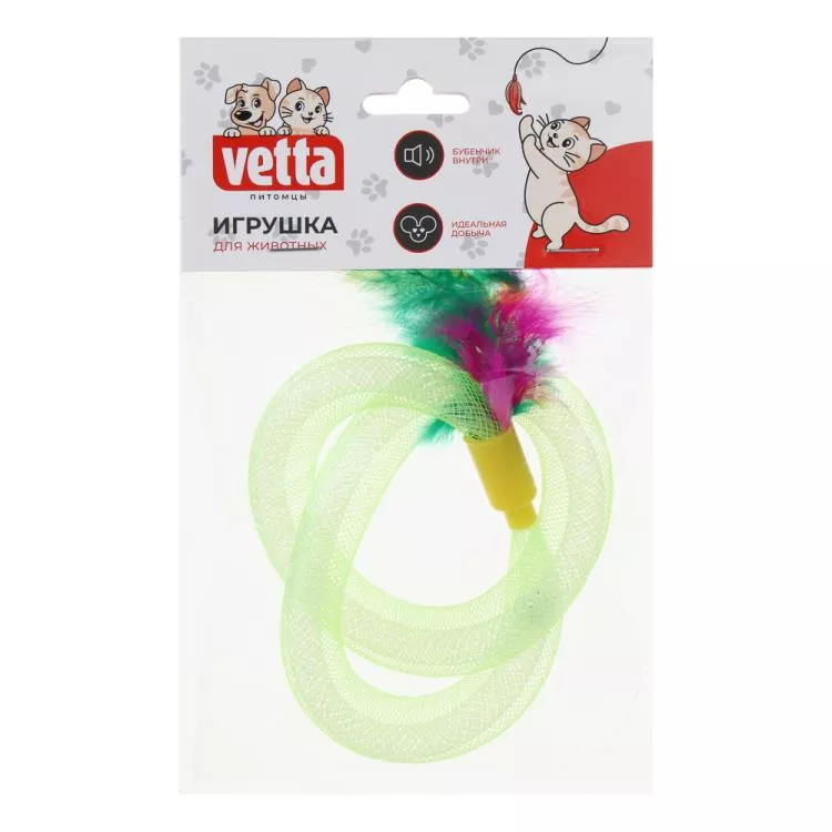 Игрушка-дразнилка с перьями 12х8см, цв.микс