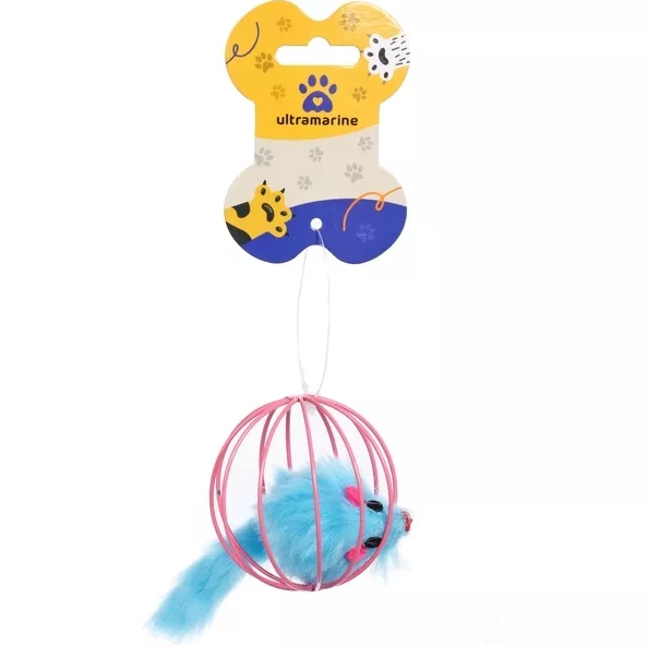 Игрушка-мячик для кошек "Мышь в шарике" 6см, цв.розовый/голубой