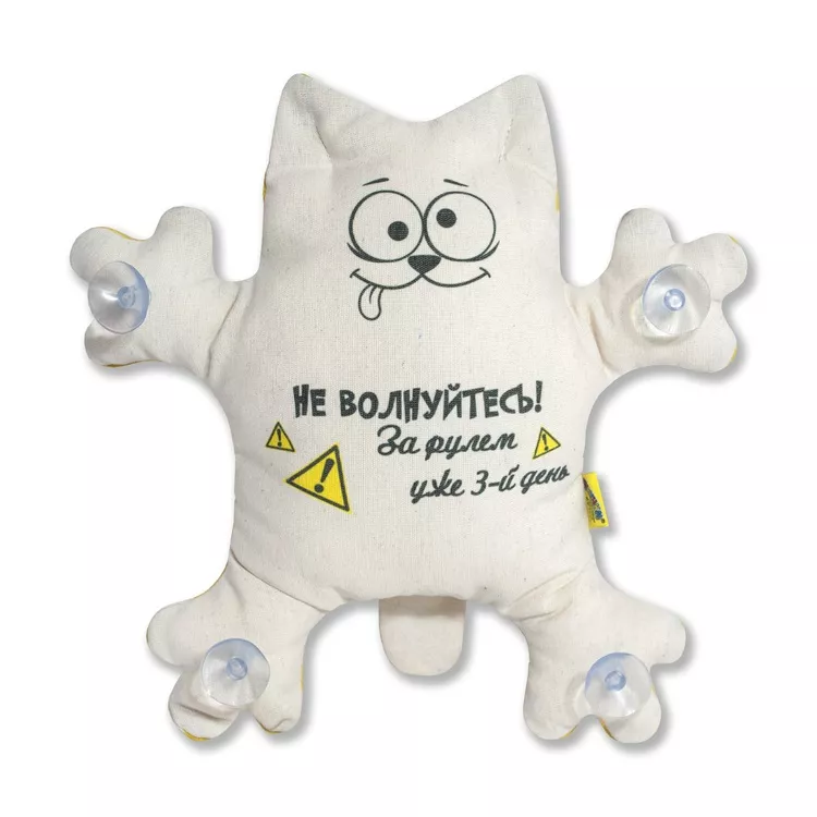 Игрушка мягк. "Кот "Не волнуйтесь! За рулем уже 3-й день" 30х30см