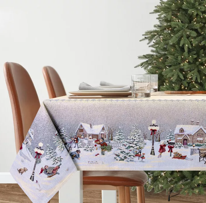 "Елочные украшения. Красный бордюр" Скатерть круглая d-140см