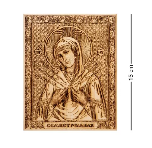 Икона "Божией Матери "Семистрельная" на кедровой доске 15см