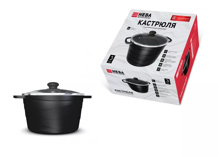 "Индукция" Гранит" Кастрюля со стекл. крышкой 3л