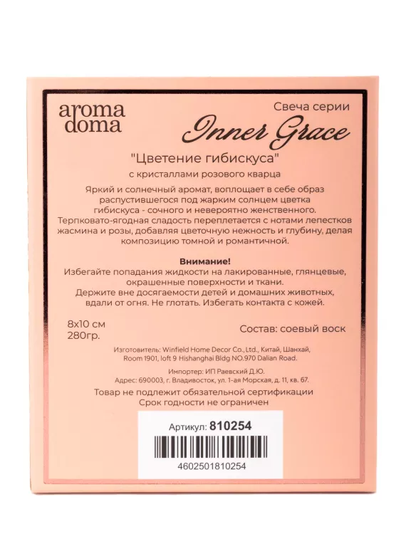 "Inner grace" Свеча "Цветение гибискуса" 8х10см с эффектом потрескивания
