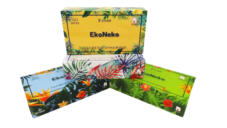 "INSHIRO"EkoNeko" Салфетки бумажные двухслойные "Tropical collection" 130шт.