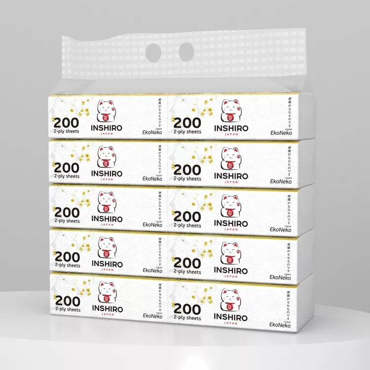 "INSHIRO"EkoNeko" Салфетки бумажные в мягкой упаковке, двухслойные 200шт.