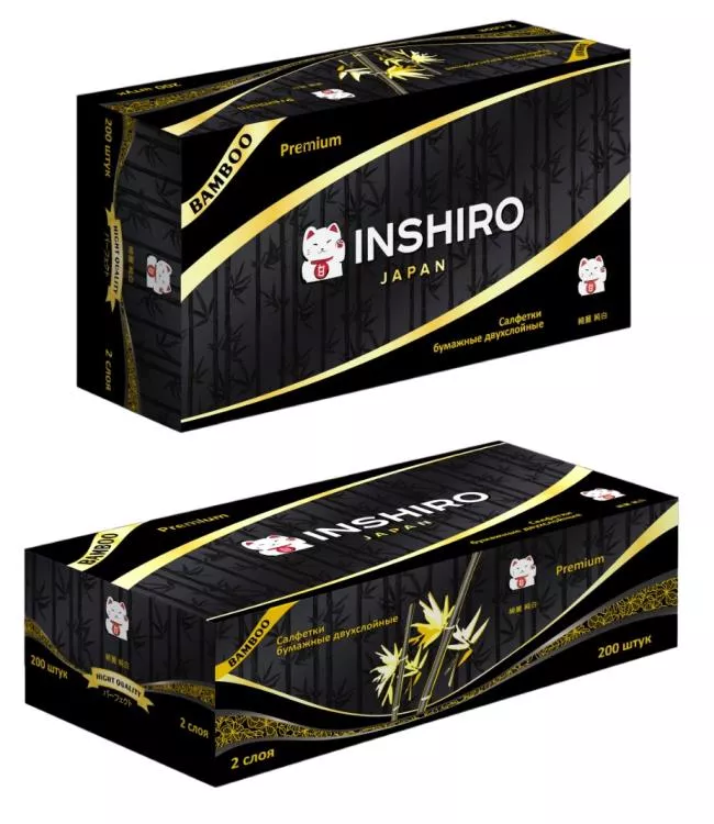 "INSHIRO"PurPure" Салфетки бумажные двухслойные "Bamboo" 200шт.