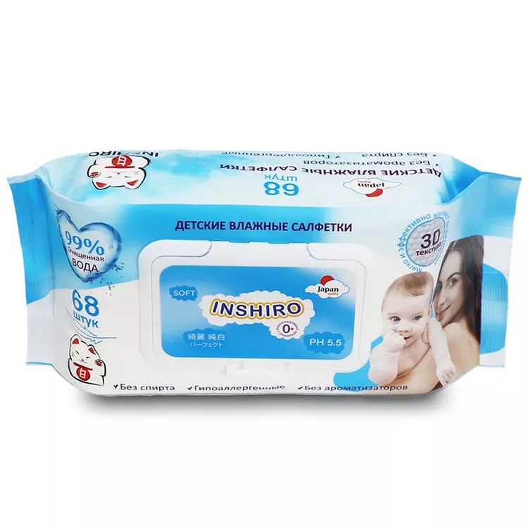 "INSHIRO"PurPure" Влажные салфетки гипоаллергенные "Детские" 68шт.