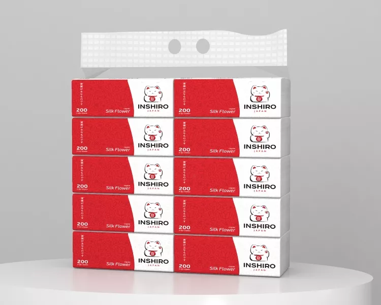 "INSHIRO"SilkFlower" Салфетки бумажные в мягкой упаковке, двухслойные "Japan" 200шт.