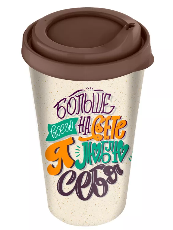 "Izi-go" Люби себя" Стакан с крышкой 550мл, цв.темно-коричневый