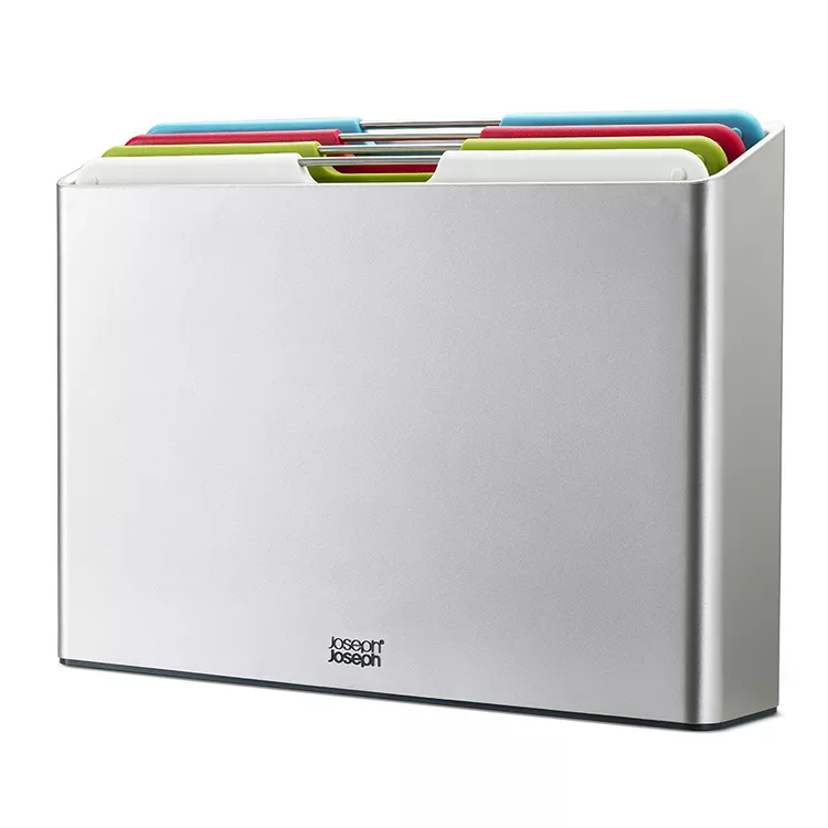 "JJ "Folio Large" Набор разделочных досок 4шт. 7,5х26х36см пласт., с подставкой цв.серебристый