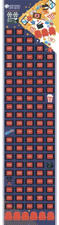 Плакат с заданиями под скретч-слоем "100 фильмов, которые должен посмотреть каждый", из мелованной бумаги, в картонном тубусе