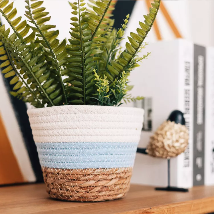 Кашпо плетеное "Намибия" d=15,5см, h=13,5см, цв.бело-голубой