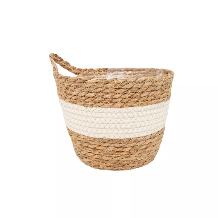 Кашпо плетеное "Танзания" с ручкой d=15,5см, h=13,5см, цв.натуральный/белый
