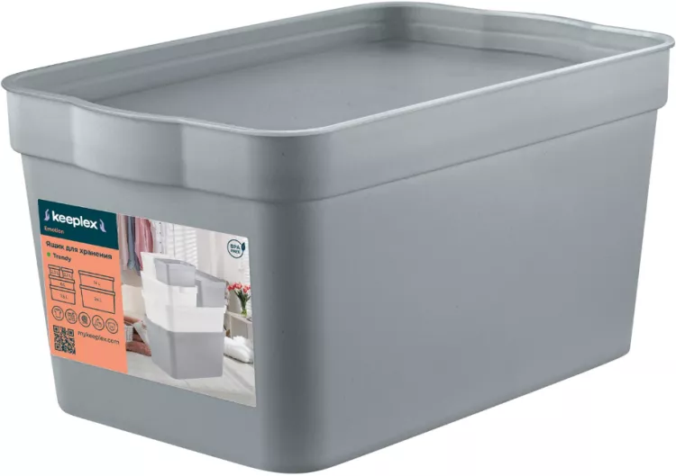"Keeplex" Ящик для хранения "Trendy" с крышкой, 24л, 45,2х29,8х24,4см, цв.серый топаз
