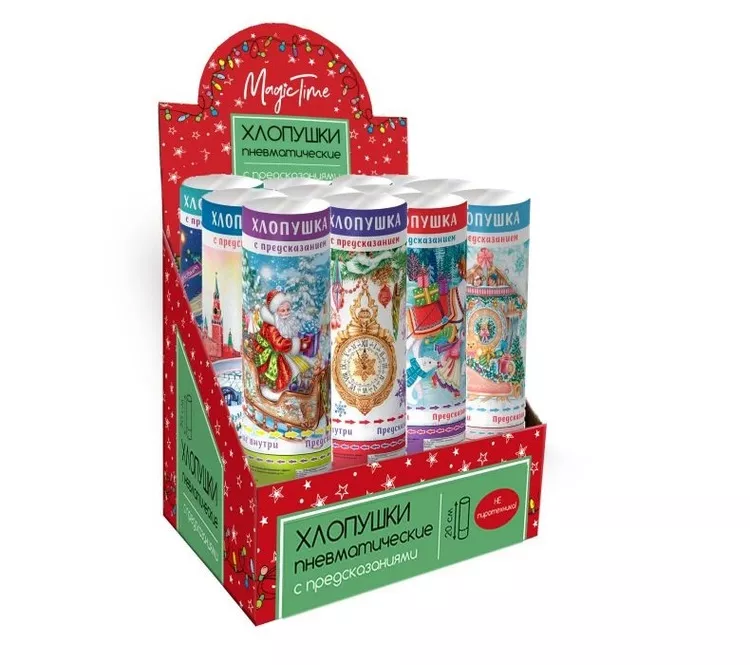 Пневмохлопушка на основе сжатого воздуха, с наполнителем из разноцветного конфетти из ПЭТ и пожеланиями из бумаги / 20см