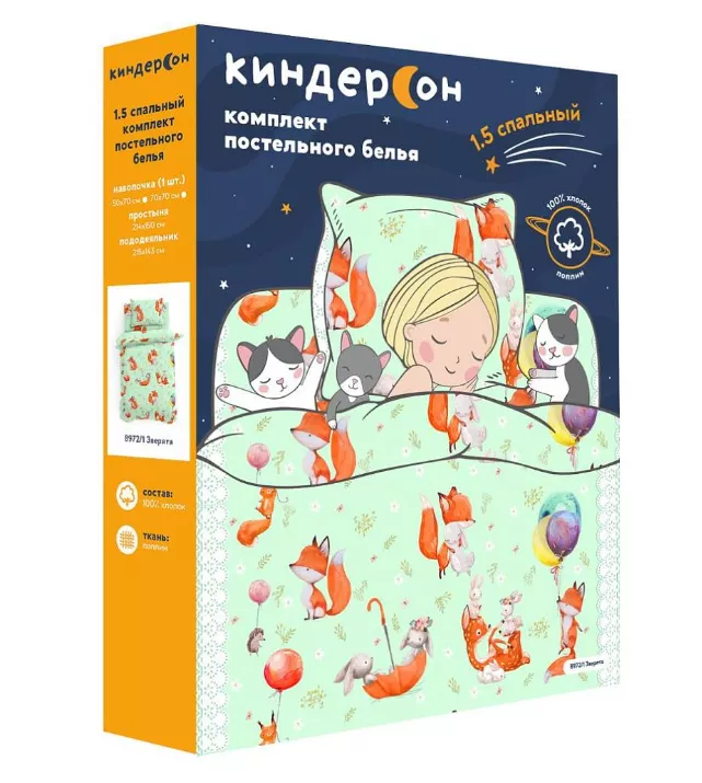 "КиндерСон" Комплект постельного белья "Зверята" 1,5сп, 70х70см, поплин