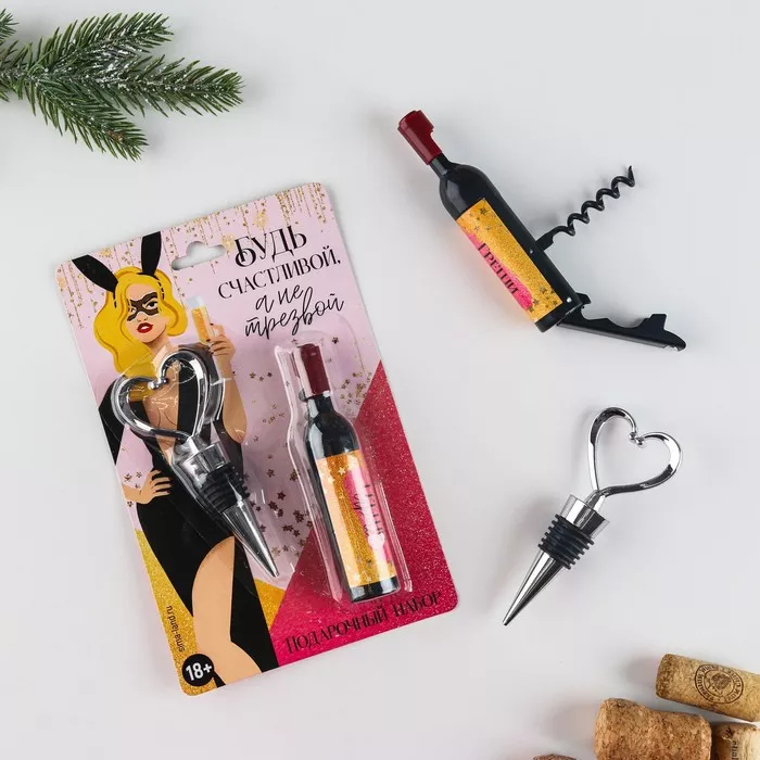 "Кино, Вино" Набор: штопор и пробка "Будь счастливой"