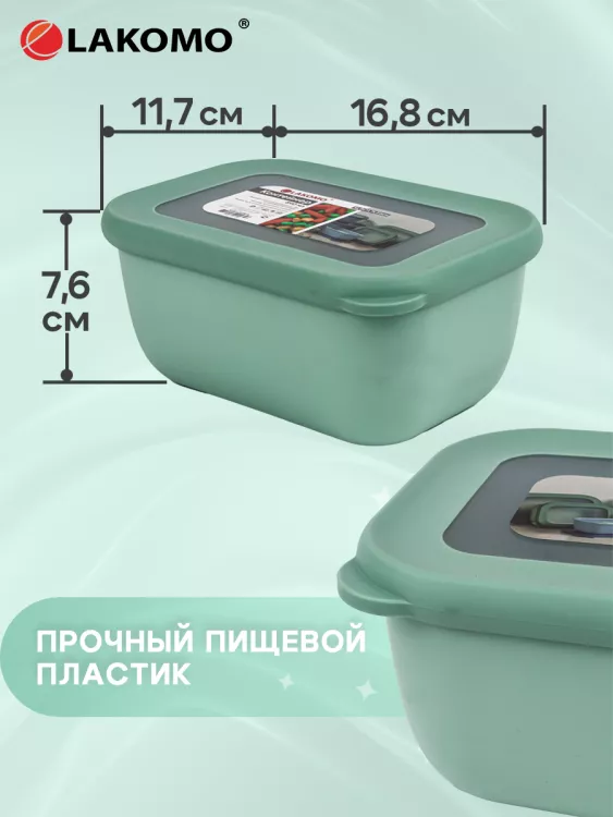 "Kitchen" Контейнер пластик 0,89л прям 16,8х11,7х7,6см,цв.зеленый