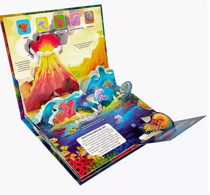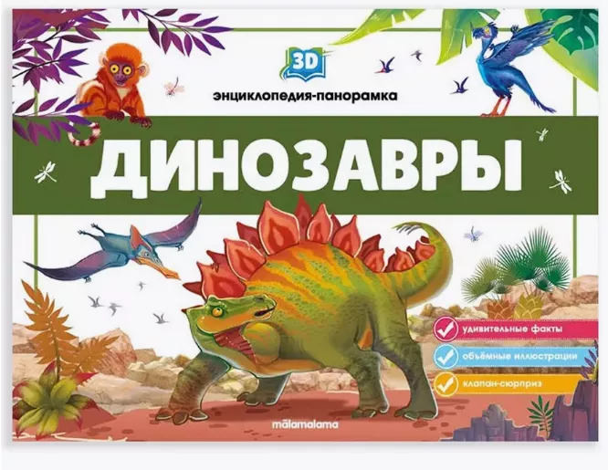 Яркая энциклопедия «Динозавры» в формате книжки-панорамки с невероятными объёмными иллюстрациями. 3D-развороты создают ощущение дополненной реальности и настоящего путешествия в доисторические эпохи. В книге есть откидные клапаны-сюрпризы, заглянув под ко...