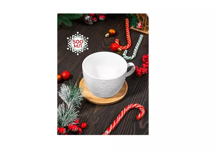 Кофейная пара "Снежинки" на деревянной подставке 500мл