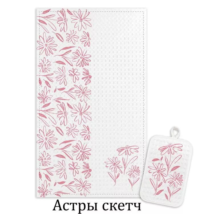 Комплект кухонный "Астры скетч" полотенце 39х60см, прихватка 14х22см