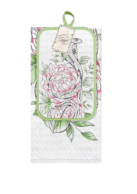 Комплект кухонный "Кобра в цветах" полотенце 35х60см, прихватка 14х22см
