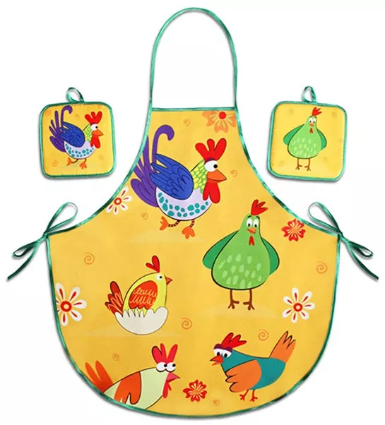 Комплект кухонный "Петушки" фартук, прихватка 18х18см