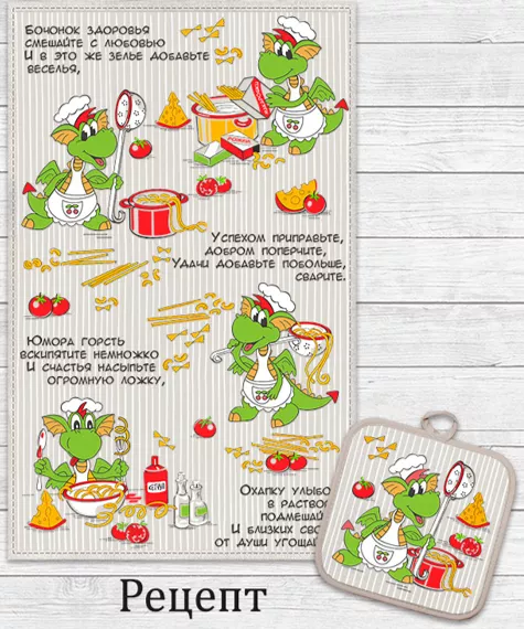 Комплект кухонный "Рецепт.Дракон" полотенце 39х60см, прихватка 18х18см
