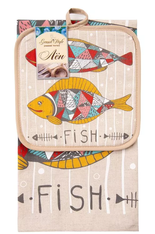Комплект кухонный "Рыба" полотенце 45х60см, прихватка 18х18см
