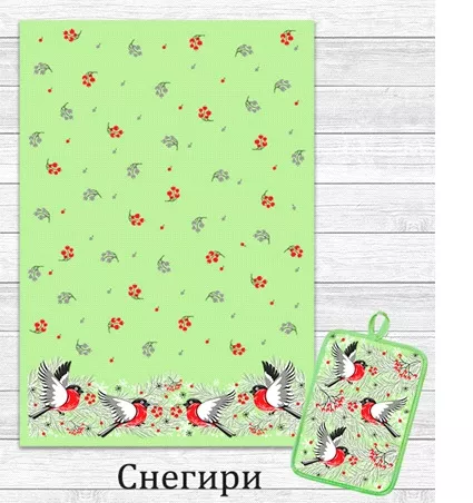 Комплект кухонный "Снегири" полотенце 39х60см, прихватка 14,5х22см