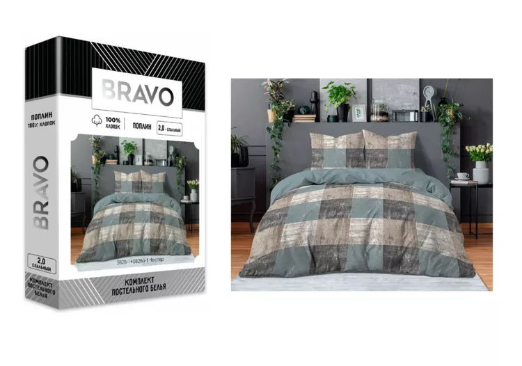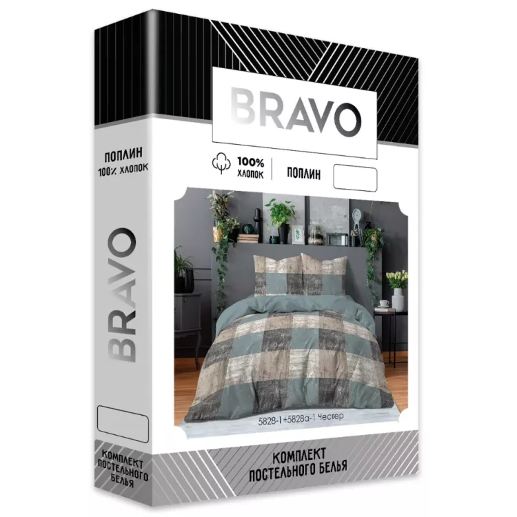 Комплект постельного белья Браво "Честер" 2сп с евро-простыней, 70х70см, поплин