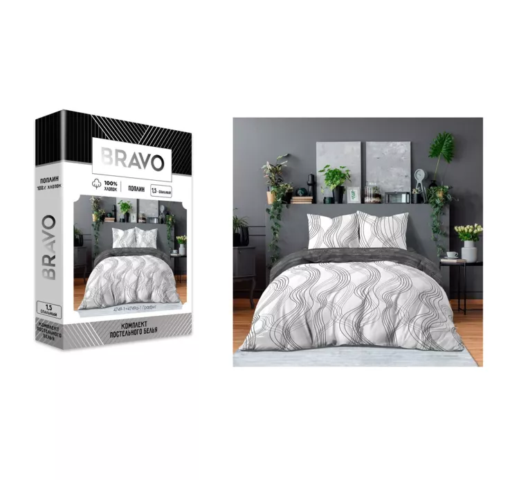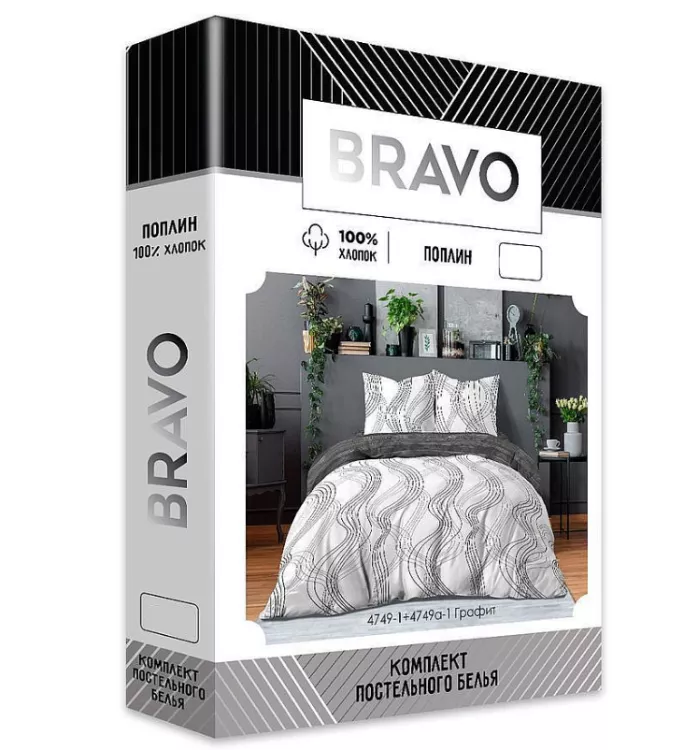 Комплект постельного белья Браво "Графит" 2сп с евро-простыней, 70х70см, поплин
