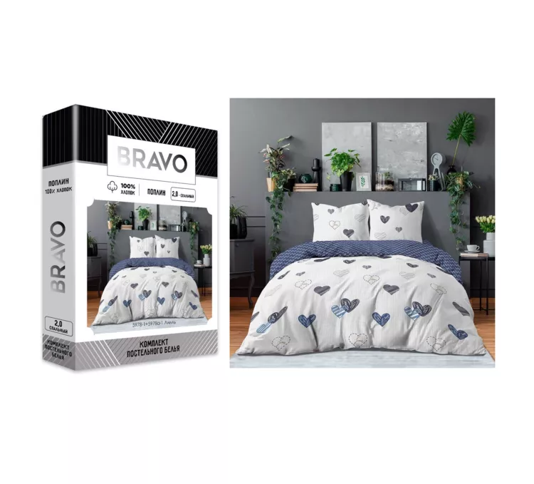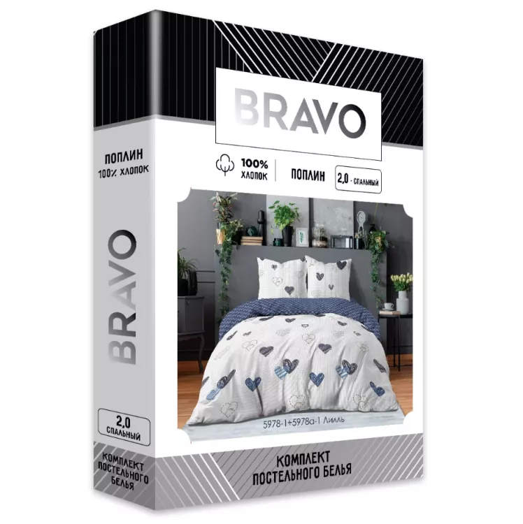 Комплект постельного белья Браво "Лилль" 2сп с евро-простыней, 70х70см, поплин