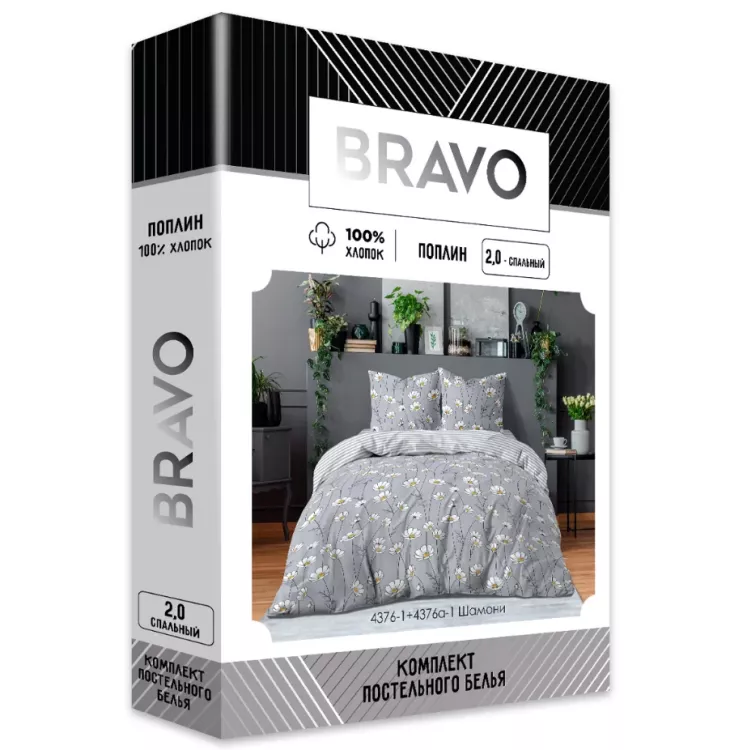 Комплект постельного белья Браво "Шамони" 2сп, 70х70см, поплин
