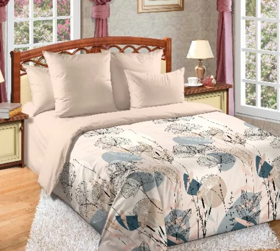 Комплект постельного белья "Floristic" 2сп, простыня на резинке 50х70см, перкаль