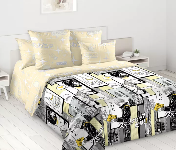 Комплект постельного белья "Кавай" 2сп, простыня на резинке, 50х70см, перкаль