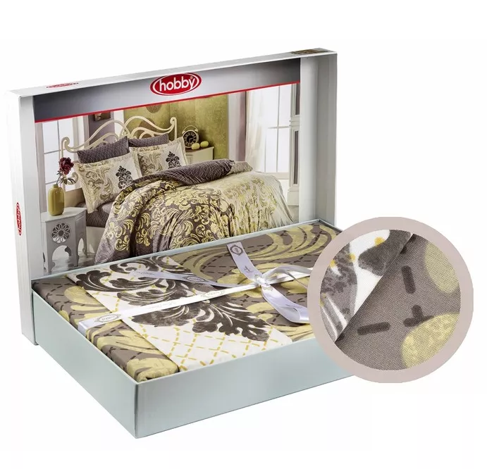 Материал: поплин, 100% хлопок. Пододеяльник 1 шт. 160X220 cм. Простыня 1 шт. 160X240 см. Наволочка 1 шт. 50x70 см. Наволочка 1 шт.