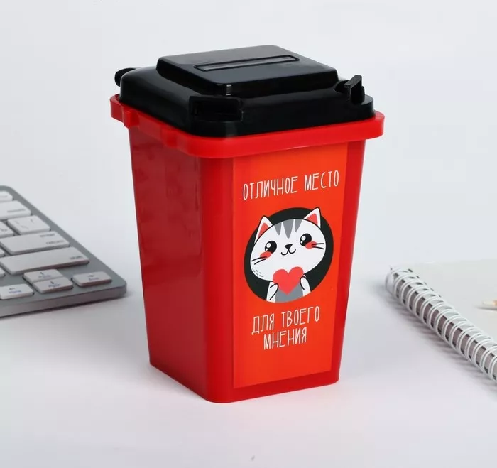 Контейнер для мусора настольный "Для твоего мнения" 12х9см, цв.красный