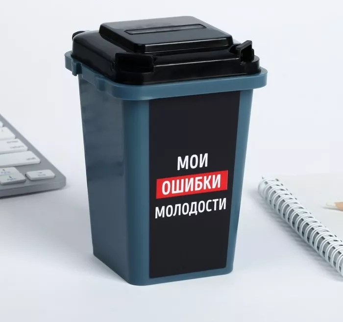 Контейнер для мусора настольный "Мои ошибки молодости" 12х9см, цв.серый