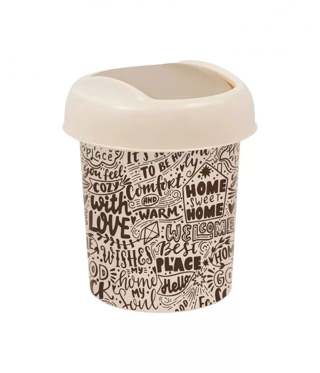 Контейнер для мусора настольный "Palm"Декор Надписи" 1л, цв.светло-бежевый