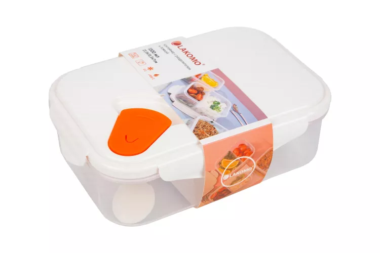 Контейнер с разделителем и ложкой пластик 1,3л прям 21,5х15,5х7см