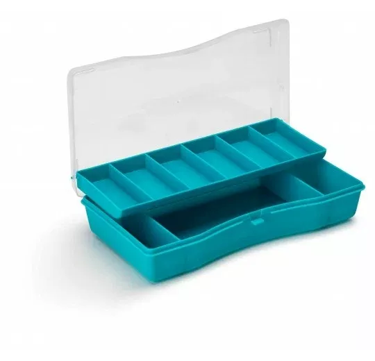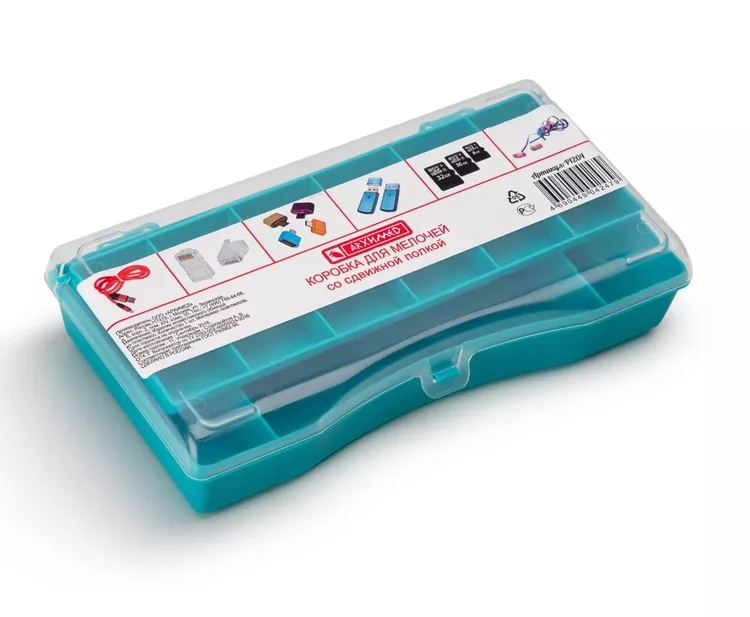 Коробка для мелочей со сдвижной полкой 22х12х4,5см, цв.бирюзовый