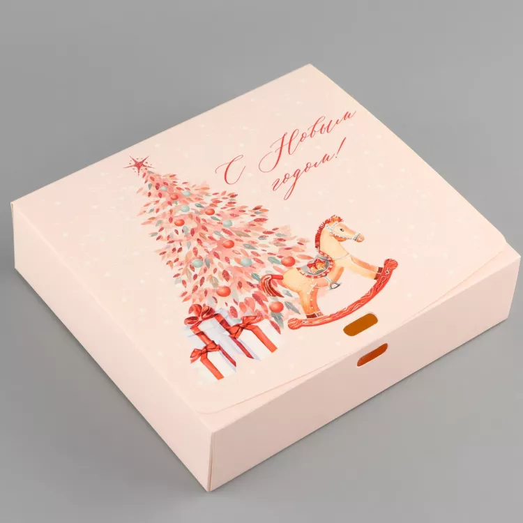 Коробка подарочная "Новогодние игрушки" 20х18х5см, цв.розовый
