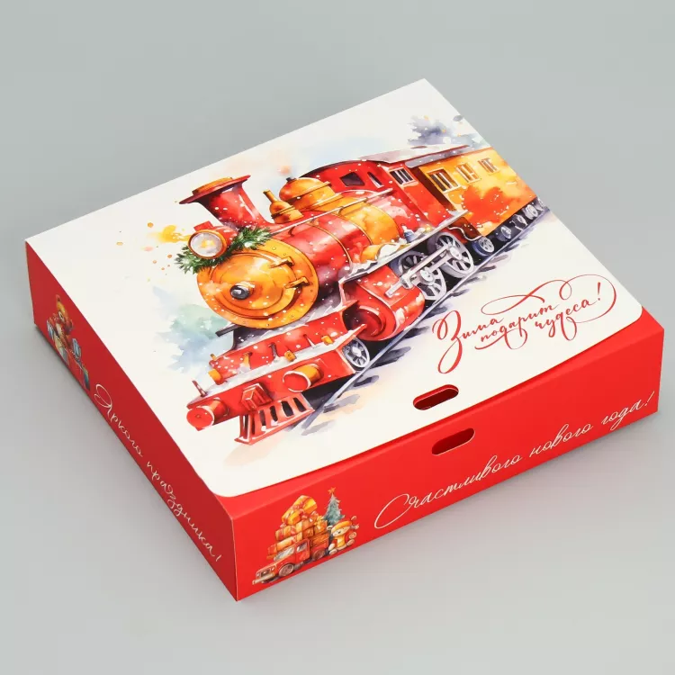 Коробка подарочная "Новогодний поезд" 20х18х5см, цв.красный