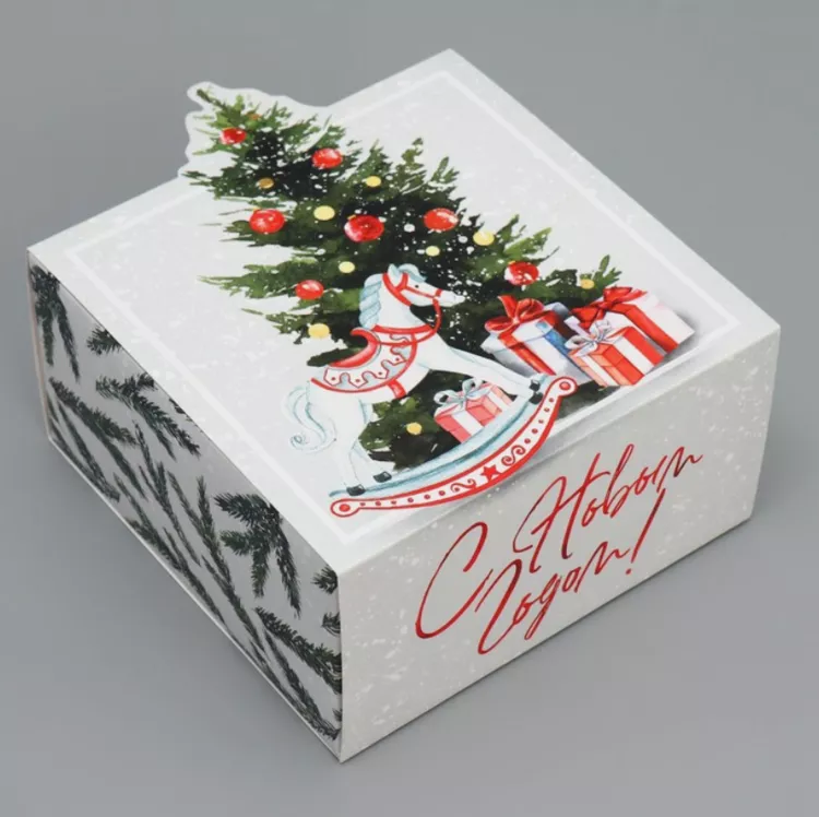 Коробка подарочная "С Новым годом" 15х15х8см, цв.белый