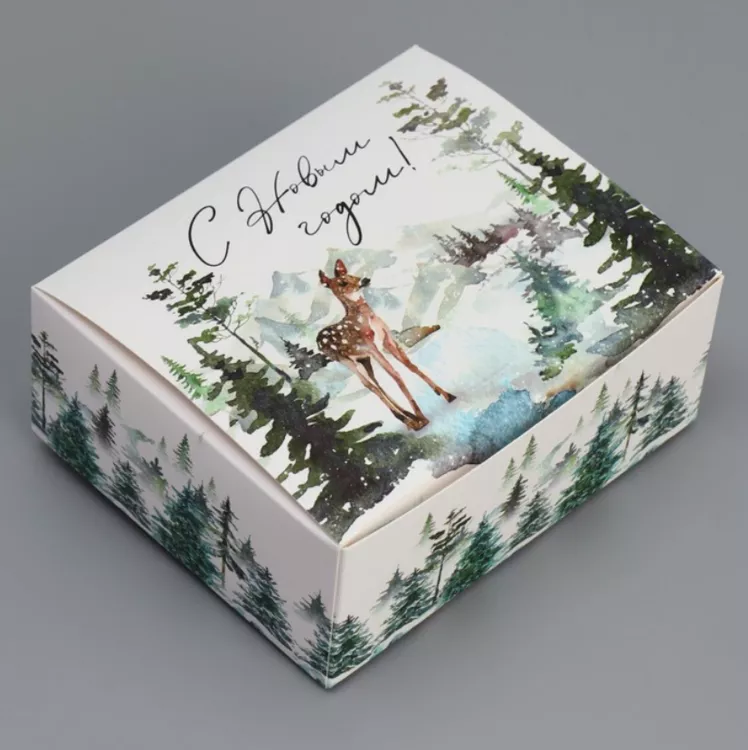 Коробка подарочная "С Новым годом! Олень" 12х10х5см, цв.белый